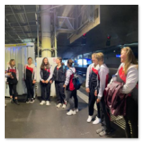 Die Reise begann bereits mit dem Treffpunkt um 7 Uhr am Kreuzlinger Hauptbahnhof. Die 3-stündige Zugfahrt verlief eher ruhig, da die meisten noch etwas Müde waren. Aber kaum in Wichtrach angekommen, spürten wir das Wettkampfkribbeln aufkommen. Bei herrlichem Wetter und einem wunderbaren Panoramablick in die Berner Alpen suchten wir uns einen Platz um uns auf den kommenden Wettkampf vorzubereiten. Wir hatten einen 3-teiligen Vereinswettkampf mit den Disziplinen Gymnastik Bühne ohne Handgerät, Fachtest Hindernislauf und Fachtest Allround zu absolvieren. Zudem starteten wir noch in der Pendelstafette.