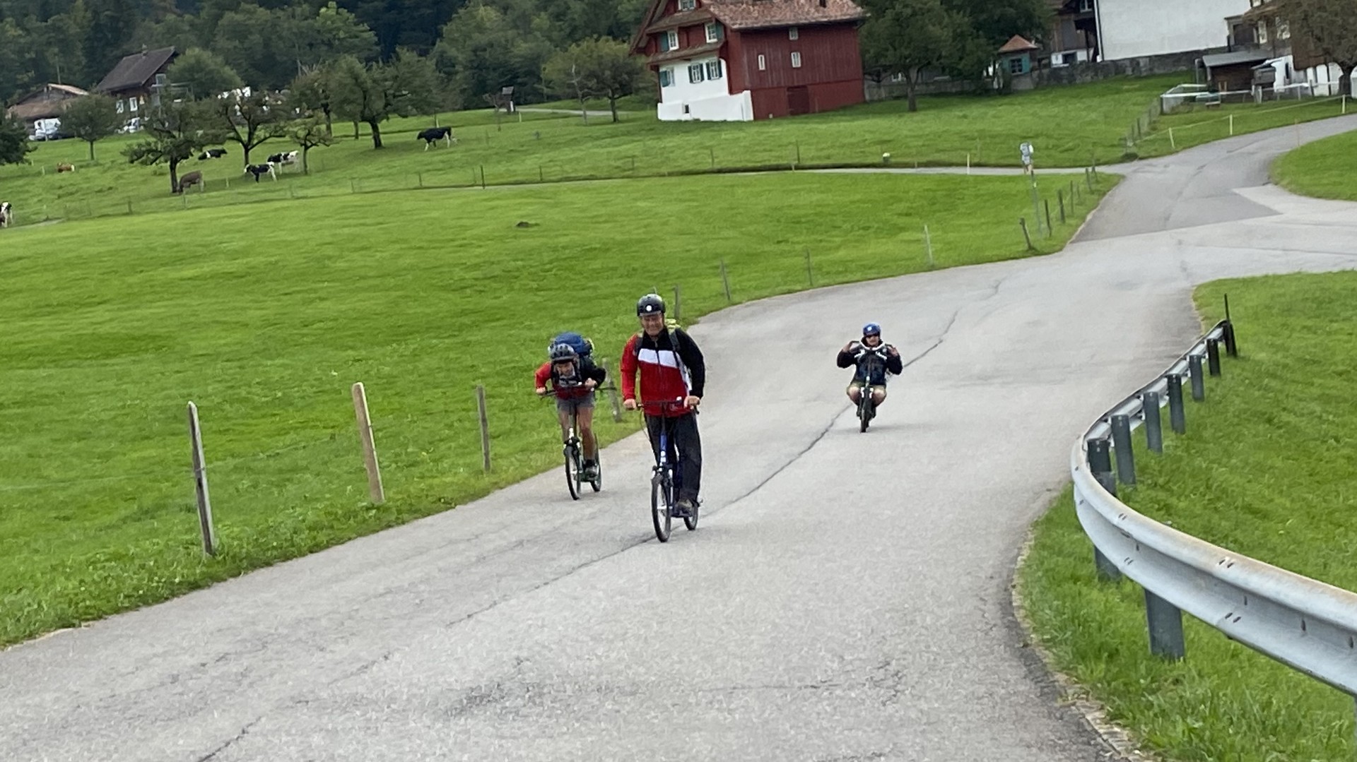 spontan, die Strecke ins Tal auf dem Trottinett zurückzulegen. Nach einem