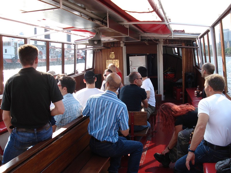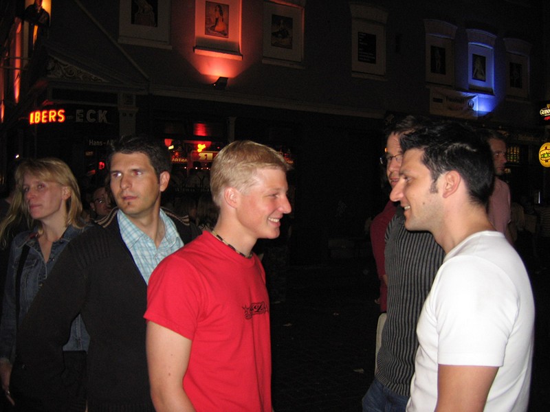 Das – trotz fortgeschrittener Stunde – immer noch sehr warme Wetter lockte uns dann aufs Deck, wo ziemlich lange und ausführlich sämtliche Grundsatzfragen des Lebens mal endlich ausführlich diskutiert wurden. Und gerade diese unendliche, aufrichtige Ehrlichkeit muss dafür verantwortlich gewesen sein, dass unisono beschlossen wurde, wenn schon Hamburg dann nochmals Reeperbahn.