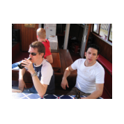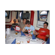 Aber für das Nachtessen hat sich unser OK wiederum etwas spezielles ausgedacht, dass den Frust schnell vergessen liess. Auf dem im Hafen liegenden Feuerschiff, das im Jahre 1991 in ein Restaurant umfunktioniert wurde, war für den Turnverein die ehemalige Brücke gleich unterm Leuchtturm reserviert. Selbstverständlich bestellten die meisten Fisch, der ganz lecker schmeckte. Und der schöne Sonnenuntergang, muss dafür verantwortlich gewesen sein, dass einige sich zu Hause melden mussten. Die sind so blöd, da rufen die zu Hause an und labern die ganze Scheisse runter: «Oh, des is so scheen, au des ises, des is so en schöner Abend, des is so romantisch – wie goht’s em Jan?» Alles abgedrehte Typen, alder. Die gehören doch weisste wohin, eh?