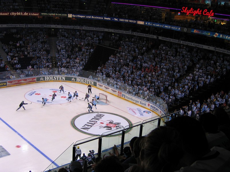 Stadtrundfahrer, Treppensteiger und Langschläfer traffen sich am Nachmittag wieder vereint in der «Color−Line−Arena», wo wir unsere Lieblingmannschaft die «Hamburg Frezzers» im Kampf gegen die «Nürnberg Ice Tigers» unterstützten – leider ohne Erfolg!