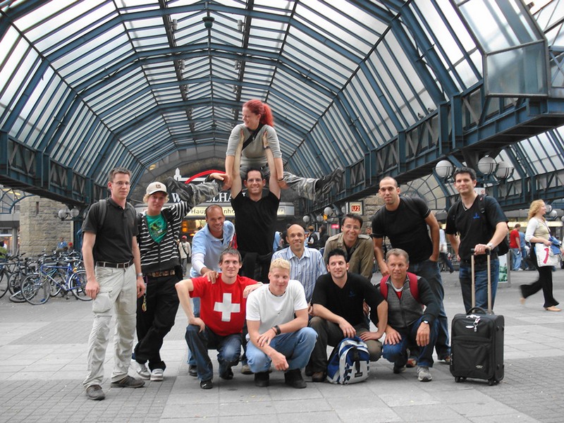 Zurück am Hauptbahnhof verschafften wir uns mit einem Coupe die notwendig gewordene Abkühlung – Schliesslich zeigte das Thermometer immer noch über 20° Celsius. Für das Familienalbum posierten wir noch vor dem Hauptbahnhof, bevor es mit dem Bus zum Flughafen ging, von wo uns die AirBerlin wieder sicher nach Zürich zurück brachte.
